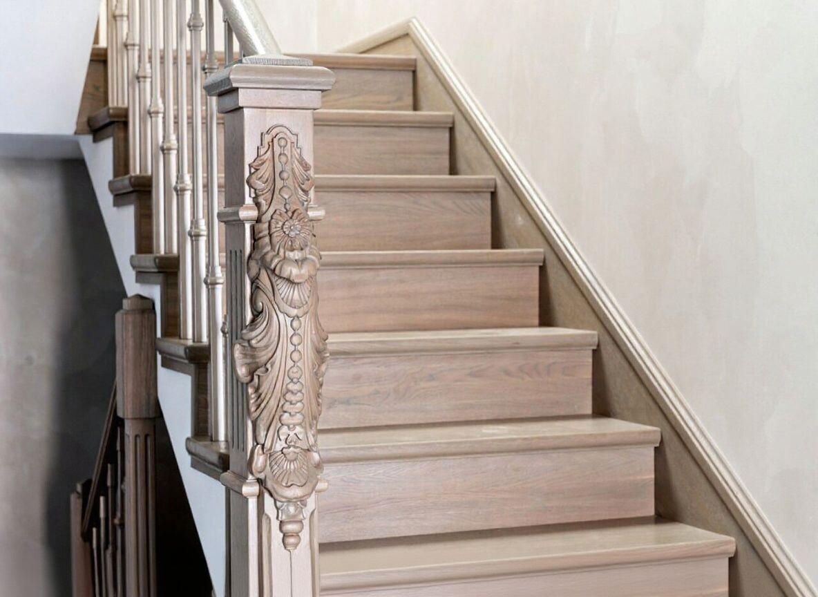 Идея для вашей лестницы: Попробуйте сыграть на контрасте: сочетайте массивные, богато украшенные резные столбы с минималистичными, тонкими балясинами. Это придаст лестнице динамику и сделает ее визуально легче, не теряя в статусности и роскоши.
